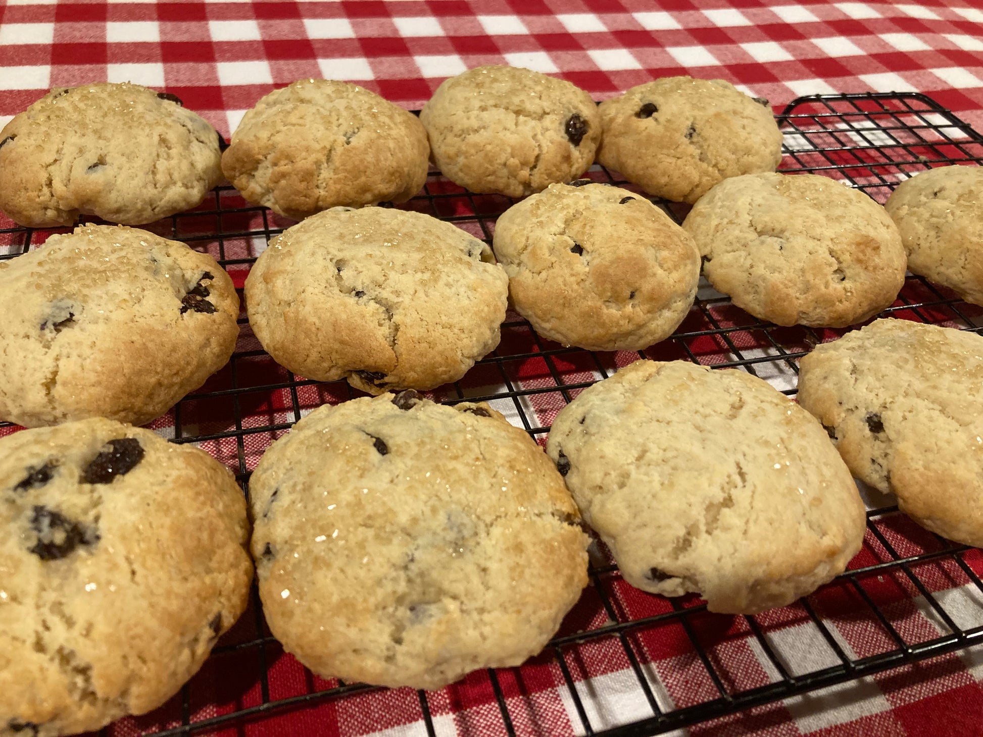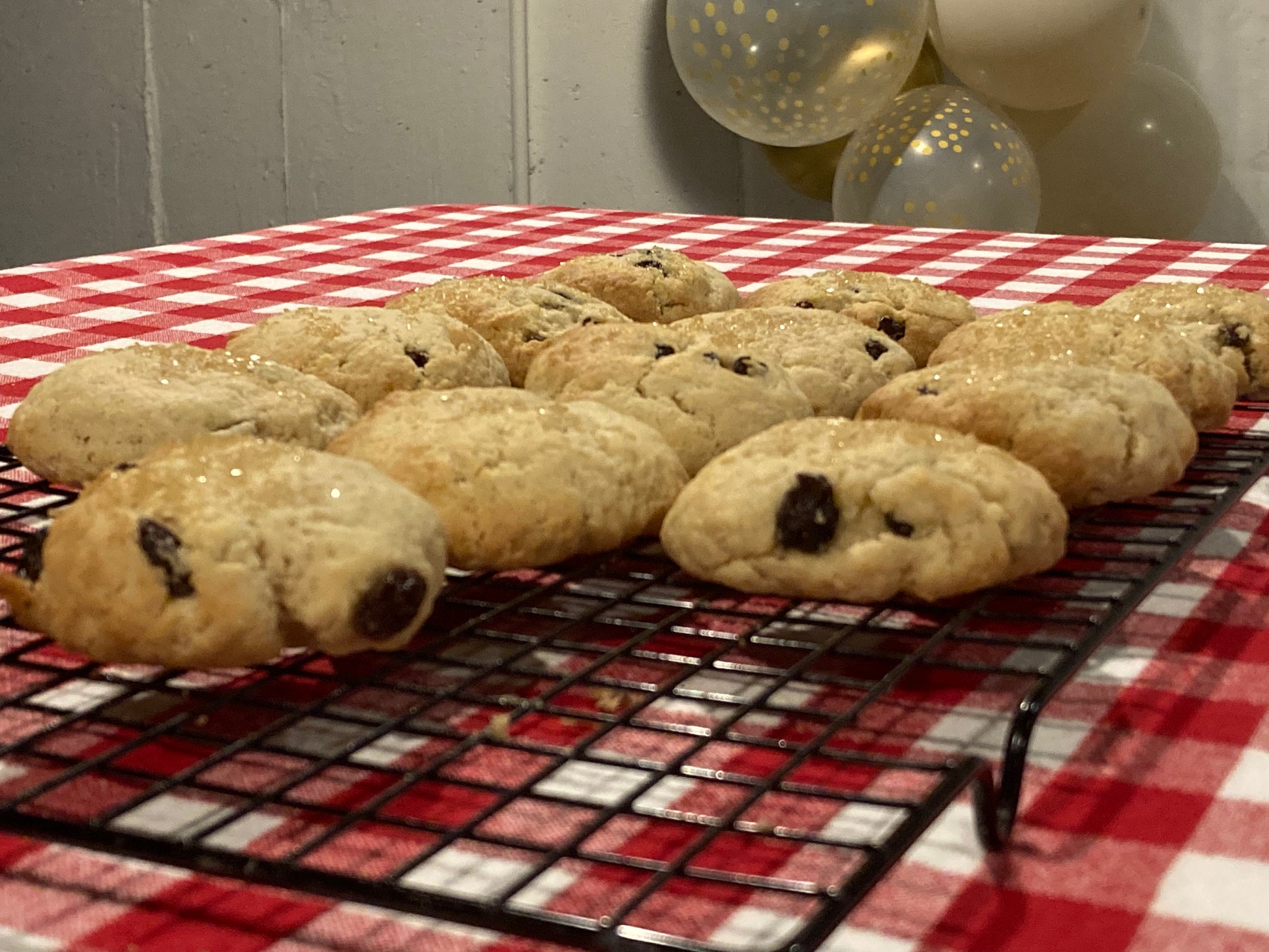A baker's dozen of our uniquely original Irish Soda Bread Cookies. Traditional Irish soda bread in cookie form!!! We created a delicious recipe with minimal ingredients, and no eggs!!! (ingredients below). With a sprinkle of turbinado sugar on top and raisins in the middle, these cookies are a perfect treat for the Irish in us all:)